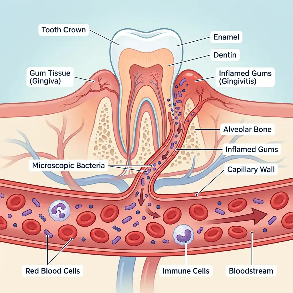 Think of your mouth as the entry point to a complex biological network. When gum disease takes hold, it doesn't stay confined to your teeth and gums. The same bacteria causing inflammation in your mouth can enter your bloodstream through bleeding gums—those areas that bleed when you brush or floss. Once in your circulatory system, these oral bacteria become unwelcome travelers, journeying throughout your body and potentially settling in places they were never meant to be.